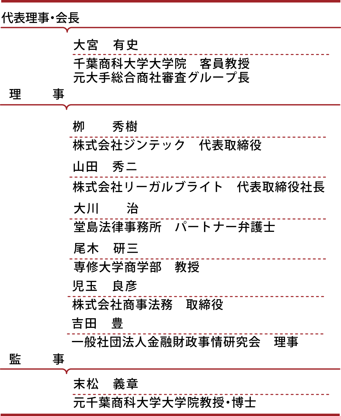 | 設立の目的 | 与信管理及び関連する諸分野についての理論及び実務の研究、並びに与信管理の品質及び与信管理実務担当者の専門的能力の向上を推進するとともに、与信管理に関する知識を広く一般に普及することにより、わが国産業、経済の健全な発展に資することを目的とする。 |